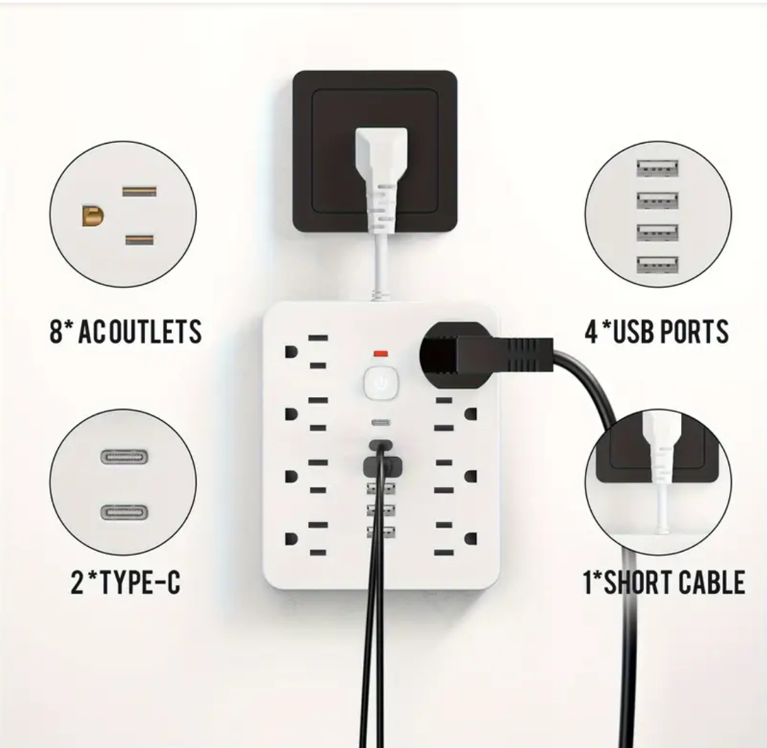 Power type All-in-One Charging Solution: This 14-in-1 power adapter comes equipped with 4 USB sockets, 2 Type-C sockets, and 8 AC sockets, allowing you to charge multiple devices simultaneously.